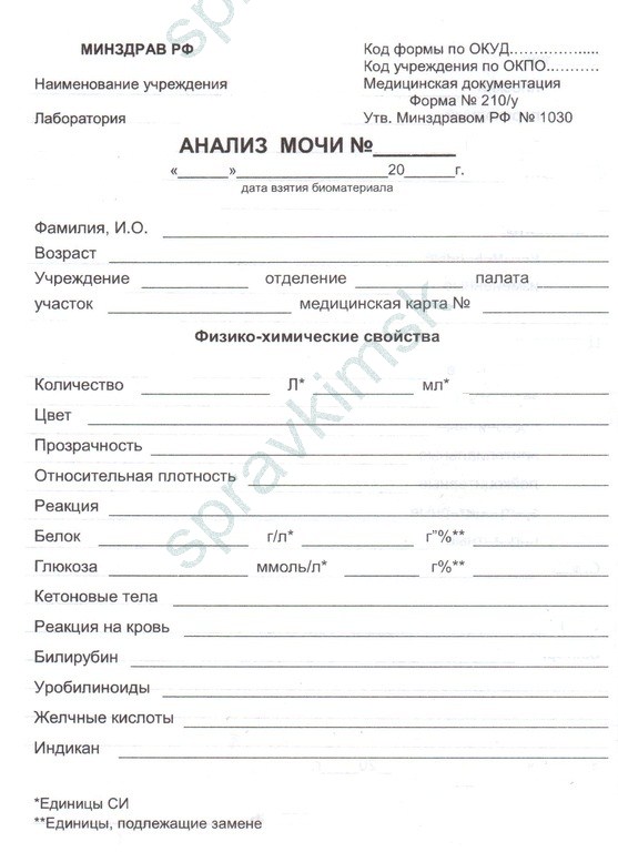 Анализ мочи по форме 210/у назначаются взрослым и детям, больным и здоровым: