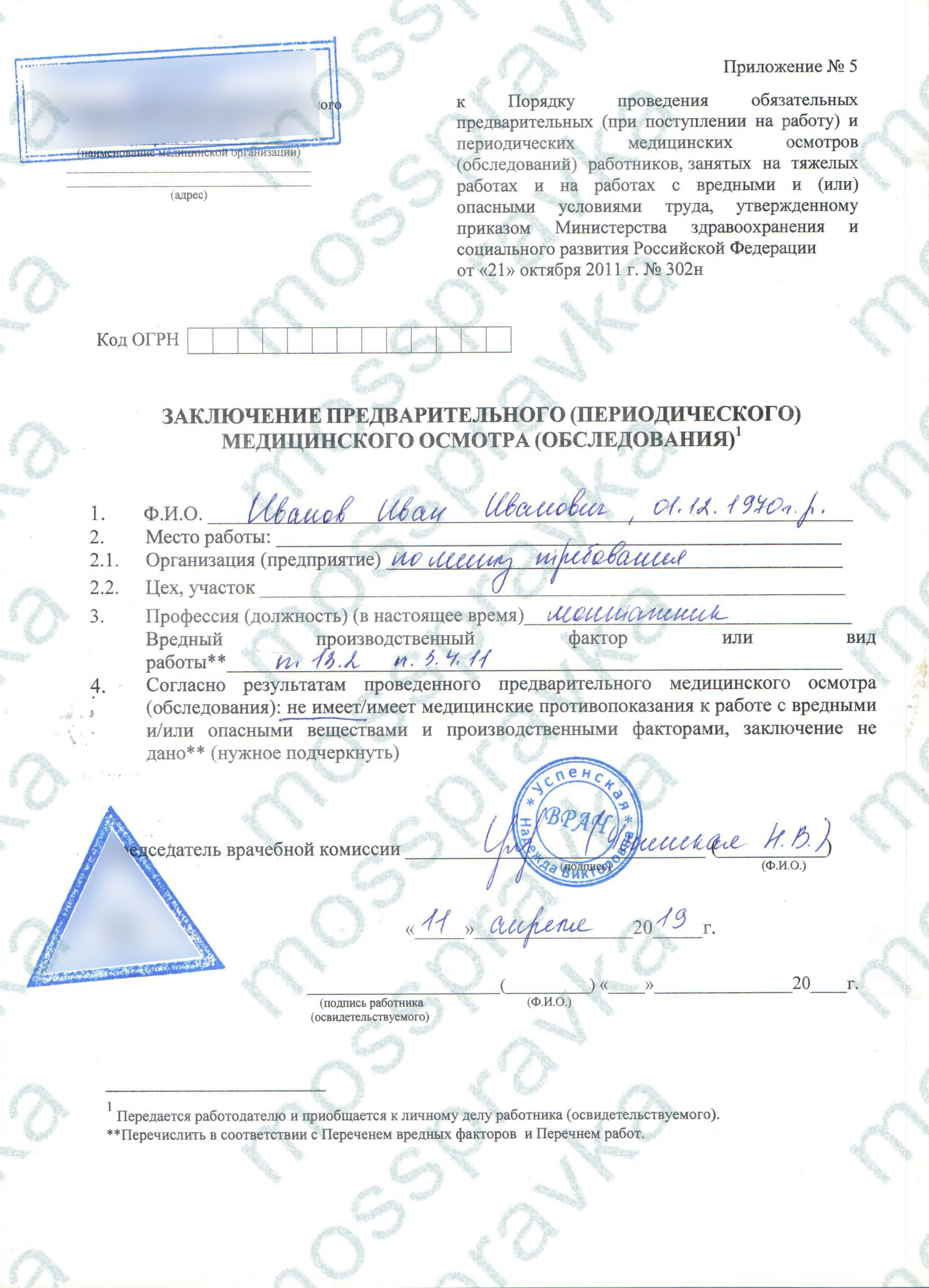 Справка 302Н это медицинский документ для трудоустройства на работу лицам с условиями труда, имеющими потенциальную опасность. Справка 302Н подтверждает для потенциального работодателя, что соискатель профпригоден для трудовой деятельности. А полное медицинское обследование позволяет своевременно выявить проблемы со здоровьем, хронические заболевания и противопоказания по здоровью и исключить риск развития профзаболевания. Также медицинский документ 302Н может понадобиться студентам военной кафедры, медицинских вузов и др. Справку можно оформить в государственной поликлинике или частной клинике после медосмотра врачами.