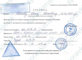 Купить справку в бассейн в Москве